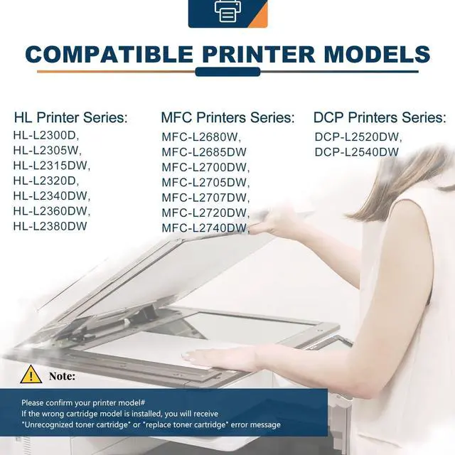 Printer Compatibility: HL-L2300D, HL-L2305W, HL-L2320D, HL-L2340DW, HL-L2360DN, HL-L2360DW, HL-L2365DW, HL-L2380DW, DCP-L2500D, DCP-L2520DW, DCP-L2540DN, DCP-L2540DW, DCP-L2560DW, MFC-L2700DW, MFC-L2707DW, MFC-L2720DW, MFC-L2740DW, MFC-L2700DWR, MFC-L2700DN, MFC-L2680W, MFC-L2705DW ^^