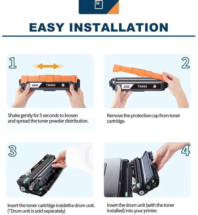Warm Tip: Includes TN660 black toner cartridge 4 pack only, not included drum unit. You need to keep the Ankink drum or original drum when you replace the toner cartridge