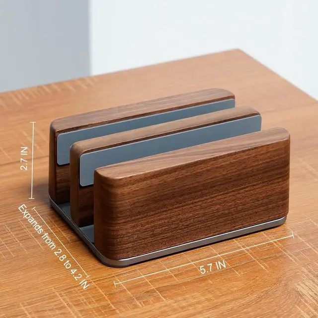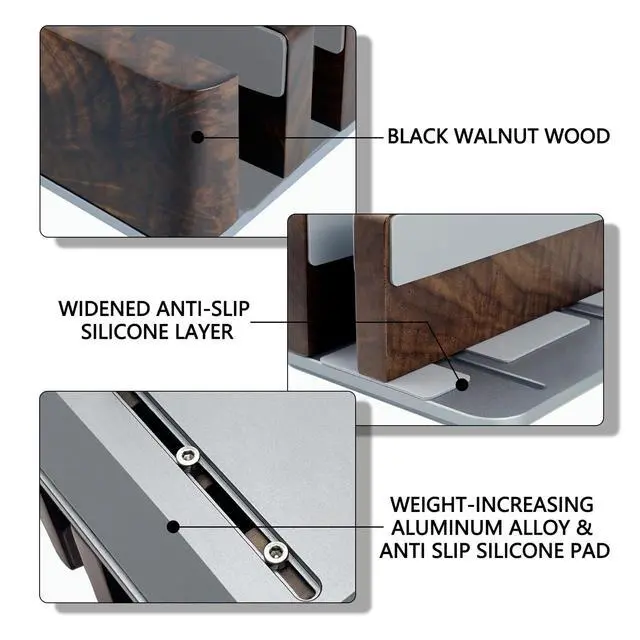 Premium Wood: Crafted from high-quality walnut wood, this laptop stand features natural wood grain that adds elegance and a touch of nature to your workspace. The texture and sheen of walnut give the stand a modern yet tasteful appearance, making it a perfect addition to your office or desktop.
