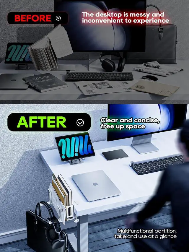 • Save space: The installation position is on the side of the desk, which does not take up the space of the desk, making your desk tidier. (The effective depth of the desk must be greater than 5cm/2inch, and the thickness of the desk must be less than 6cm/2.3inch)