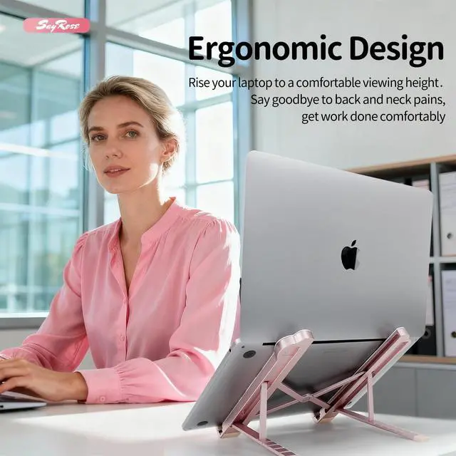 ^^ Multi-angle adjustable Design: SayRose laptop & tablet stand provides 6-speed adjustable height, adjust to comfortable operating angle and height based on your actual need. And the ergonomic design makes for easy watching and typing, relieving neck, shoulder and spinal pain.