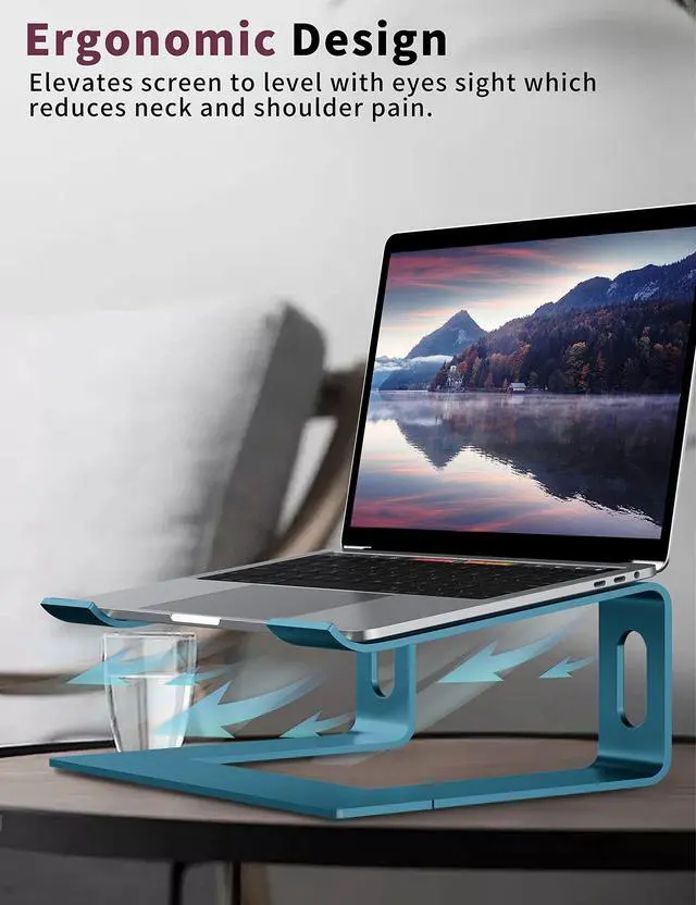 Broad Compatibility - Suitable with laptops of 10 to 15.6 inches, such as MacBook Pro 13/15, MacBook Air 13.3, Dell, XPS, Lenovo, HP, ASUS, Google Pixelbook, Samsung and other notebook computers of 10, 11, 12, 14, 15.4, 15.6 inches, etc. ^^ Ergonomic Design - Elevates your laptop height by 6 inches, a perfect height for your eye, neck and shoulder. ^^ Durable & Protective - Metal appearance made of thickened aluminum alloy, strongly durable. The rubbers on the top and bottom of holder ensure it sticks tightly to your laptop and desk, and protect your computer and desktop from scratches.