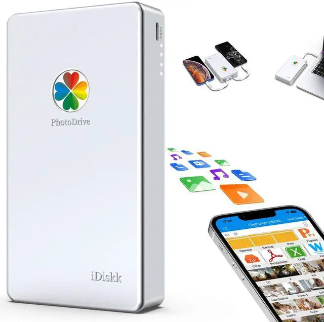 Data Backup For your iPhone/iPad/Android/Mac/PC: Mfi Certified 2TB HDD iPhone Hard Drive with built-in 2000mAh battery- The iDiskk iPhone Hard Drive helps you easily transfer content among your iPhone, iPad, PC and Mac computer and instantly expands your storage by up to 2TB, freeing up your space to lets you enjoy vide/photo anytime anywhere. ^^ One-Click to Backup Photos or Videos -One-tap to auto backup your iPhone/iPad album via App anytime the external hard drive is connected. Future backups only save newly added files, to avoid storage-consuming duplicates. Also you can use in-App camera to take photos/videos, which will be automatically stored into the drive. ^^ Highly Confidential Data Encryption Technology -Use external hard drive (photo dive) to easily share data with families, friends and colleagues. You can enable all data or partial to be protected via setting password, all the encrypted files stored in this hard drive are invisible on computer, please do not worry about disclosure of your privacy. ^^ Plug & Play- iDiskk Portable Hard Drive (photo drive) offer simple plug-play operation, just plug it into your iPhone/iPad and watch the movies directly from the hard drive on your trip or on travel.