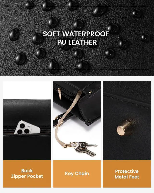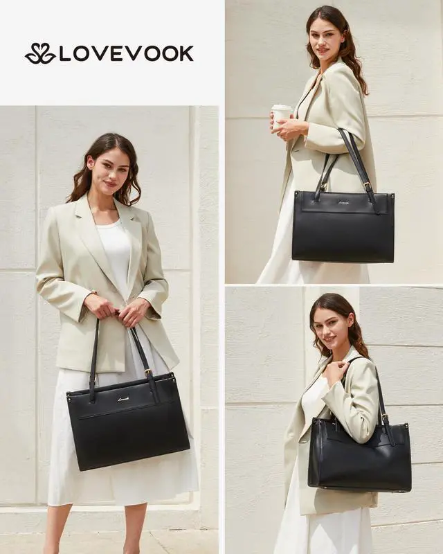 Minimalism Meets Effortless ChicSleek and simple, this women work laptop bag pairs effortlessly with office formal wear, business-casual outfits, and elegant dresses, while adapting to various scenarios such as office settings, business meetings, travel, and social events. ^^ High Quality MaterialThis computer tote purse is crafted in soft, durable, water-resistant, scratch-resistant PU Leather and polyester lining. Top smooth metal zipper for easy opening. Metal feet base protects your bag from stains. ^^ Suitable Size for YouDimension of this tote bag is 16.5 ''L x 5.4 ''W x 11''H;