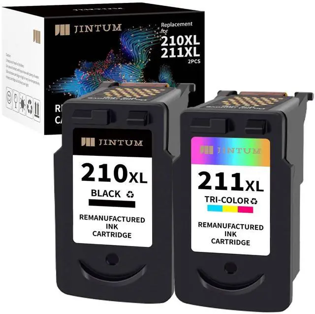 JINTUM 210XL and 211XL Ink Cartridges Remanufactured for Canon 210XL 211XL Combo Pack Compatible with Canon PIXMA MX410 MX350 MX340 MP495 MP250 (PG-210XL/CL-211XL, 1 Black + 1 Tri-Color)