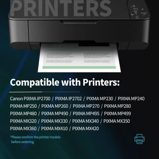 • Compatible Printers: PIXMA IP2700 IP2702 MP230 MP240 MP250 MP260 MP270 MP280 MP480 MP490 MP495 MP499 MX320 MX330 MX340 MX350 MX360 MX410 MX420