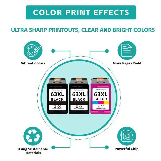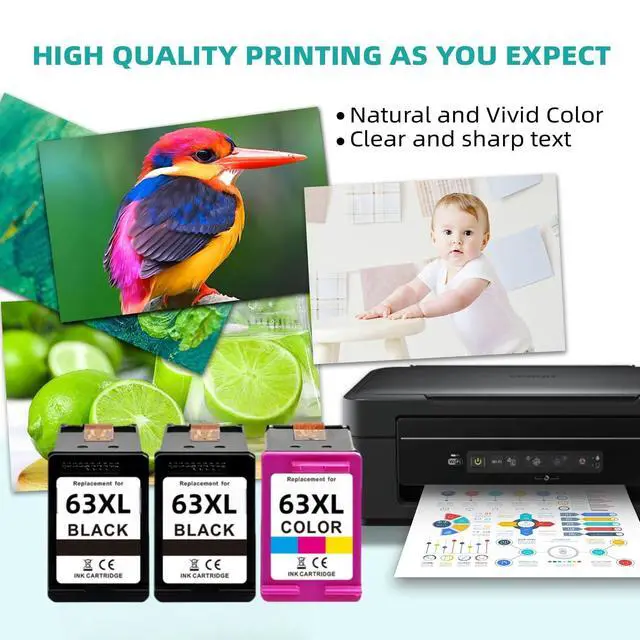 Crisp Text & Vivid Color: Pigment black keeps forms sharp, dye color brightens charts/photosgreat for labels, reports, test pages and ink 63xl color and black everyday jobs ^^ Upgraded ChipQuick, Clean