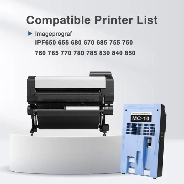 Compatible Printer List: Our MC-10 Maintenance Cartridge designed replacement for Canon Imageprograf IPF650 655 680 670 685 755 750 760 765 770 780 785 830 840 850 printers, ensuring perfect alignment and functionality to keep office printers running smoothly, please confirm your printer model before placing the order.