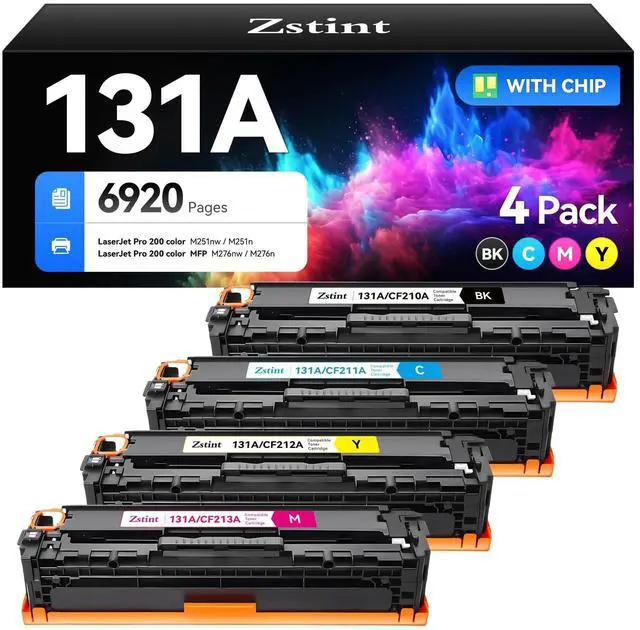 Products Name: Zstint Compatible Replacement for 131A 131X toner cartridges with chip. ^^ Compatible PrintersCompatible with HP LaserJet Pro 200 color M251nw M251n MFP M276nw M276n Laser Printer.