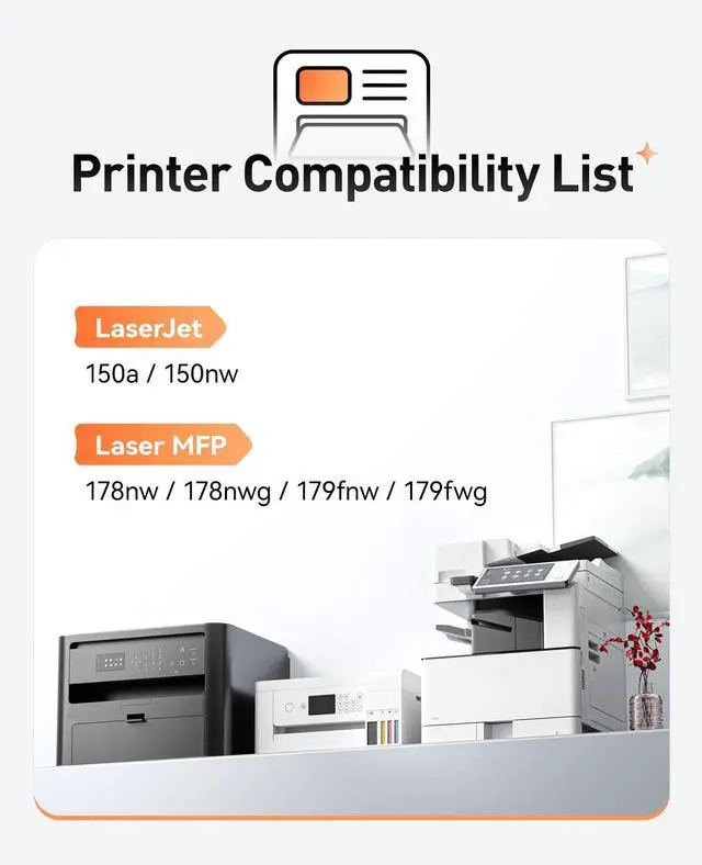 ^^ Compatible Printer: Compatible with HP Color Laser 150a 150nw; HP Color Laser MFP 178nw 178nwg 179fnw 179fwg printer.