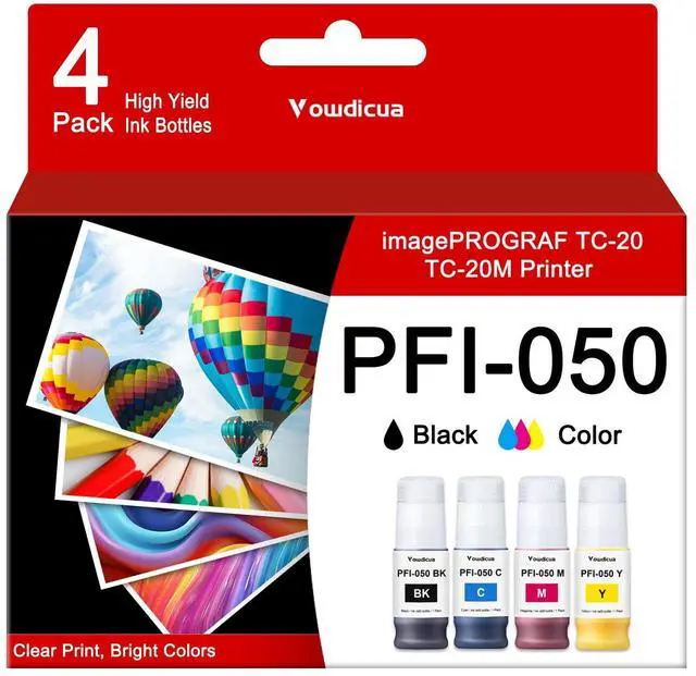 Package Contents: 4 Pack PFI-050 Ink Bottles (1BK/1C/1M/1Y) ^^ PFI-050 Ink Bottles