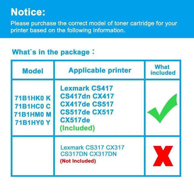 Purchase Notes: NOT Compatible with Lexmark CS317/CX317 CS317DN/CX317DN Printer.