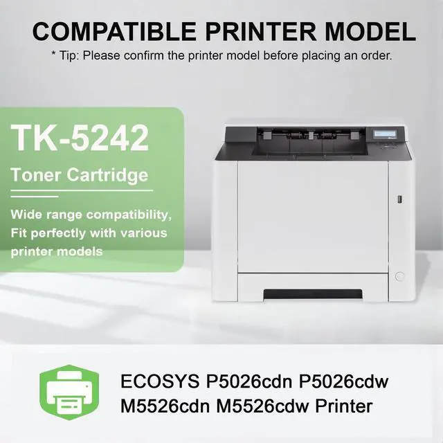 Toner Cartridge Compatibility: Works perfectly with printers to produce crisp images and high-gloss prints, and is strictly managed to ensure stability ^^ TK 5242K