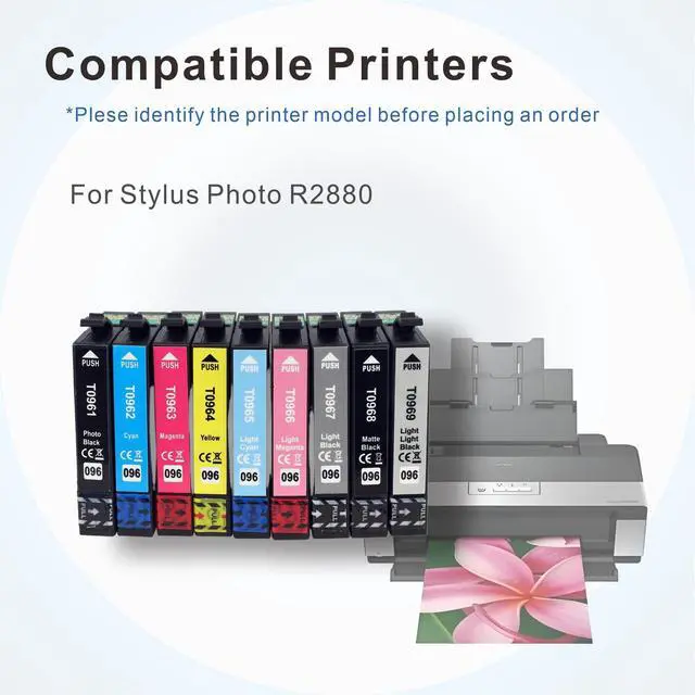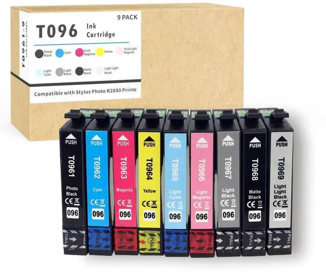 Keep your Stylus Photo R2880 printer performing at its best with this comprehensive 9-color UltraChrome K3 ink cartridge set. This complete replacement set includes T0961 through T0969 cartridges, providing all the colors needed for vivid, professional-quality prints. These cartridges are designed specifically for compatibility with the R2880 printer model, ensuring consistent performance and reliable output. The set delivers rich blacks, smooth color gradients, and precise color reproduction that photographers and artists demand. Each cartridge is filled to capacity and ready to install, allowing you to maintain your printing workflow without interruption.