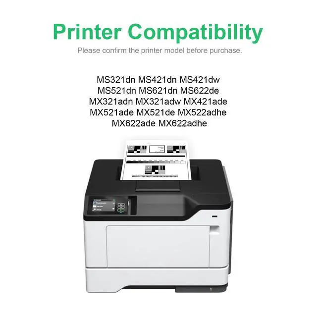 This toner works with: MS321dn MS421dn MS421dw MS521dn MS621dn MS622de MX321adn MX321adw MX421ade MX521ade MX521de MX522adhe MX622ade MX622adhe Printers ^^