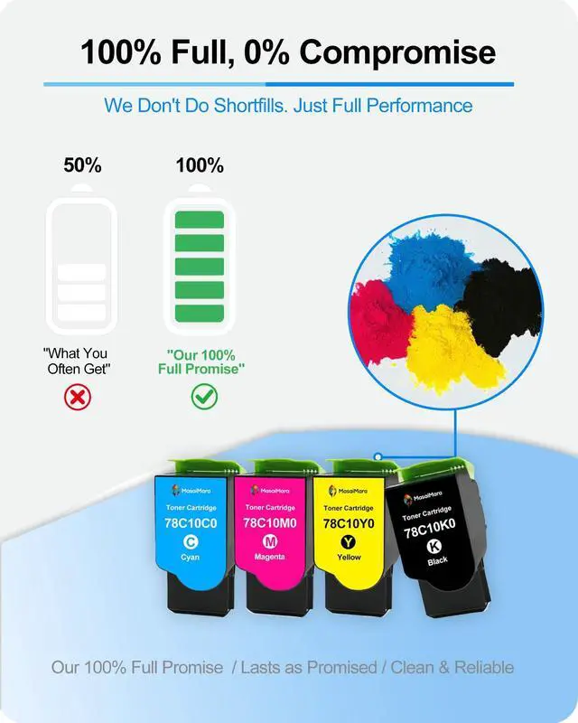 Model: 78C10K0 78C10C0 78C10M0 78C10Y0 Toner Cartridge. Formulated with premium A-Grade toner, these cartridges deliver sharp, professional prints with vibrant color accuracy while ensuring reliable performance that protect your printer and extends its lifespan.