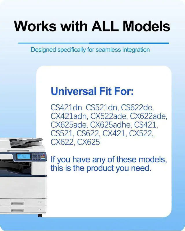 ^^ Precise Printer Compatibility: Engineered specifically for Lexmark CS421dn, CS521dn, CS622de, CX421adn, CX522ade, CX622ade, CX625ade, CX625adhe, CS421, CS521, CS622, CX421, CX522, CX622, CX625 printers. Ensures seamless installation and flawless performance.