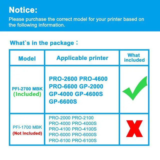 ^^ Compatible Printers: Replacement for Canon ImagePROGRAF PRO-2600 PRO-4600 PRO-6600 GP-2000 GP-4000 GP-4600S GP-6600S printers ^^