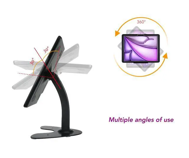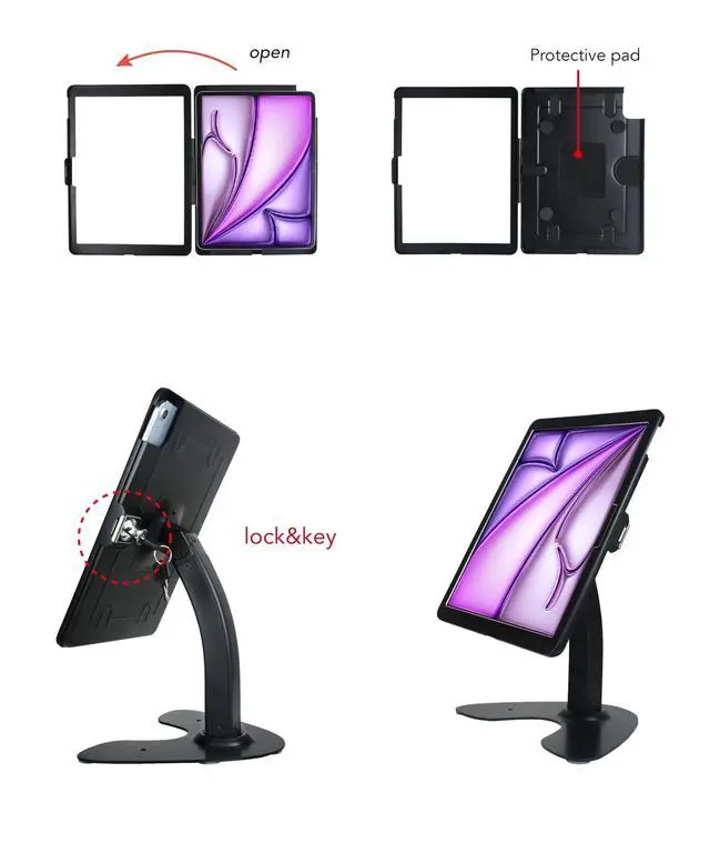 DDSHOW Desktop Anti-Theft Kiosk Stand Security POS Stand with Locking Enclosure for 13'' iPad Air (M2) 2024,Excluding 13'' iPad Pro (M4) 2024,360 Swivel(Black)