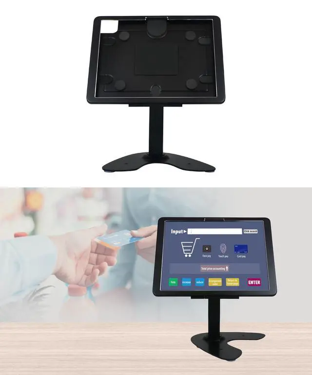360-degree rotating Pole for so it can face the customers. The screen makes it easily adjust viewing angle or rotate for horizontal or vertical views.