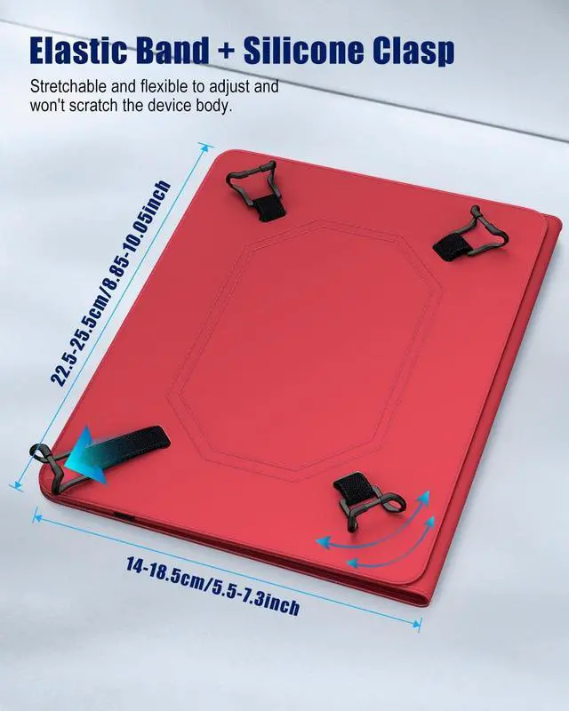 Premium Material: Built from premium PU leather exterior cover, soft microfiber interior lining design provide great protection. The tension clamps at the four corners can be adjusted to the appropriate position to hold the device securely ^^