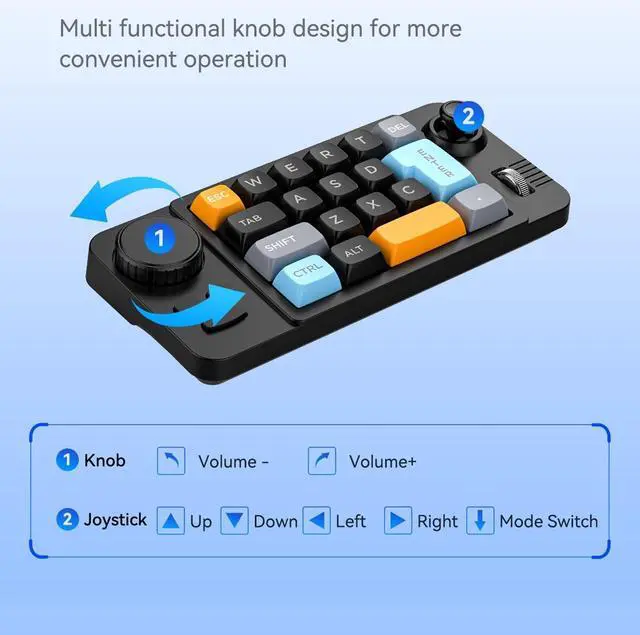 Create Custom Hot Swap Keys: Supports multiple switches, with independent replacement options for portability. Knob design is convenient and easy to use, macros can be defined for gaming and work. ^^