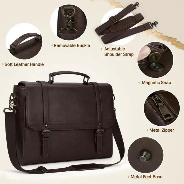 Removable Strap & Widely-Use: The laptop bag comes with a removable and adjustable shoulder strap for easy carrying. It can be used as a crossbody bag, allowing you to free your hands. The padded shoulder strap can be adjusted to fit different heights, ensuring comfort even when carrying the bag for long periods of time. This vintage messenger bag can be used as a messenger bag, business laptop bag, satchel bag, and shoulder bag. It is also a perfect gift for your husband, friend, and family.