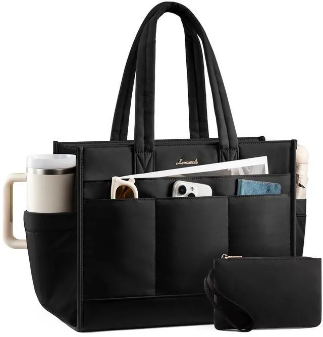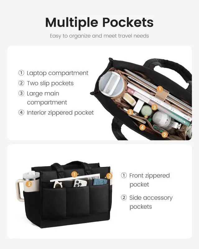 Than Order: With a massive 25-liter capacity, it achieves intelligent organization through 13 cleverly designed pockets. Your 15.6 -inch laptop and 12.9 -inch iPad are protected by dedicated padded compartments, while other items can be easily categorized. Whether it's your commuting gear or travel luggage, everything is neatly organized and readily available. ^^ Designed for large tote cups The interior pocket easily accommodates a 40-ounce Stanley water bottle. Say goodbye to worries about whether it will fit. The exterior front pocket and top zippered quick-access pocket keep your essentials within easy reach.