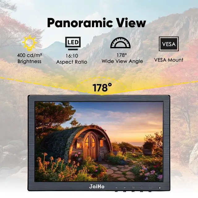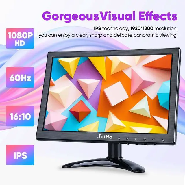 Inch HD CCTV Monitor: HD colorful PC monitor with 1920*1200 resolution, 16:10 aspect ratio, 60Hz refresh rate. 400 cd/m brightness, wide viewing angle of 178 degrees horizontally and 180 degrees vertically, brings delicate and realistic image quality. ^^ Small