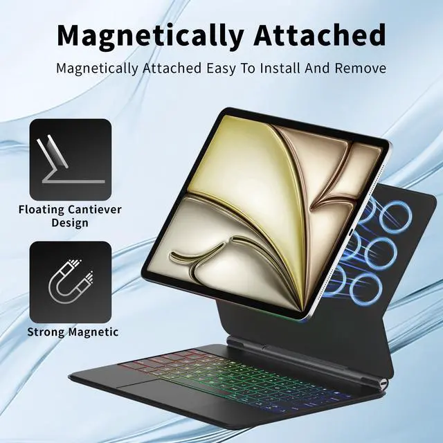Easily set up magnetic stand: You can magnetically connect your iPad to the back cover, set up the floating cantilever stand with a smooth movement, and transform your iPad into a high-performance, easy-to-use laptop! It is very suitable for travel, business and school.