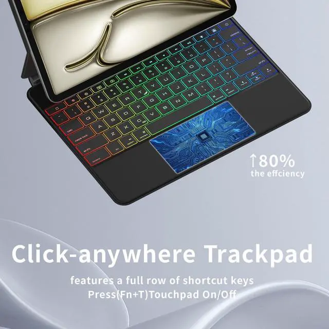 ^^ Multi-touch touchpad: It is equipped with a precise touchpad that enables you to navigate your iPad quickly and easily. Comprehensive multi-touch gesture support enables you to edit documents, build presentations and browse web pages at an unparalleled speed, thus redefining productivity. It also features a full row of iPadOS shortcuts, allowing you to adjust the brightness, volume or change the music with just a light tap.