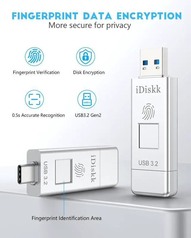 Dual Powerful encryption for data security: Fingerprint & Software Encryption bring double security for your valuable date. AES-256 encryption technology and fingerprint biological dual encryption method fully protect your data without fear of loss. ^^ APP INSTALLATION FOR ONE-CLICK AUTO BACKUP PHOTOS & VIDEOS: USB 3.2