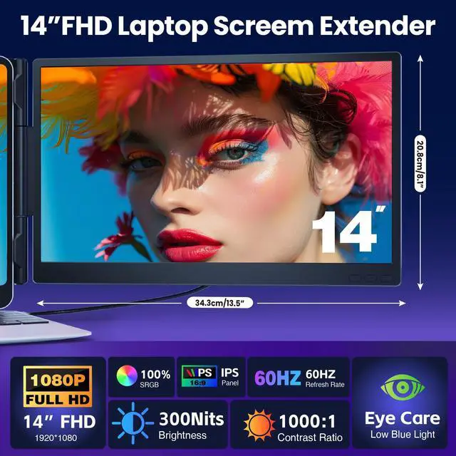 ^^ [Wide compatibility]: Our ultra-thin travel monitor for laptop supports multiple devices and operating systems. Compatible with devices such as Windows, Mac, Chrome, Android, Linux, Dex, even a Switch. Please read the manual carefully before use. If you have any questions, please contact us for technical support. NoticeThere maybe some laptop doesn't have enough Type C port or HDMI port to use the product, in this case, you can contacet us and we will provide you an special cable to connect the screen extender.