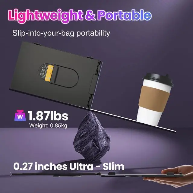 It Anywhere]: Engineered for life on the go, this portable laptop screen extender weighs only 1.87 lb and it is only 0.27 thinlighter than your laptop and as thin as a tablet. This extra screen for laptop slides effortlessly into your bag. Transform any places into a dual-screen productivity station ^^ [226 Rotation, Eye-Care