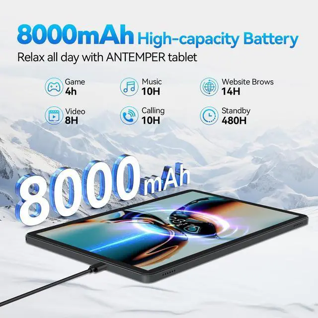 Large-Capacity Battery: No More Battery AnxietyThis 10-inch tablet is packed with a powerful 8000mAh battery, offering up to 480 hours of standby time. Carry it around without fearing power loss. With the convenient Type-C USB charging port and fast charging (5V/2A), you can quickly recharge on the go. Enjoy long hours of reading, gaming and watching your favorite content without interruption ^^ Dual 4G LTE + 2.4G /5G WiFi + Bluetooth 5.010 -inch 4G tablet with dual SIM card slots (SIM cards not included), supporting 4G LTE and VoLTE for simultaneous calls and data, enabling seamless work. Paired with dual-band AC WiFi ( 2.4GH z/5GHz) and Bluetooth 5.0, it ensures stable and efficient wireless connections for lag-free entertainment. Both SIM and WiFi modes make it more convenient and practical than traditional single-WiFi tablets ^^ Customer ServiceANTEMPER offers a 1-year product quality assurance and 24/7 customer support. If you have any questions about our Android tablet, please feel free to contact us at any time