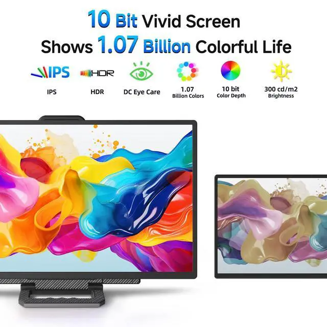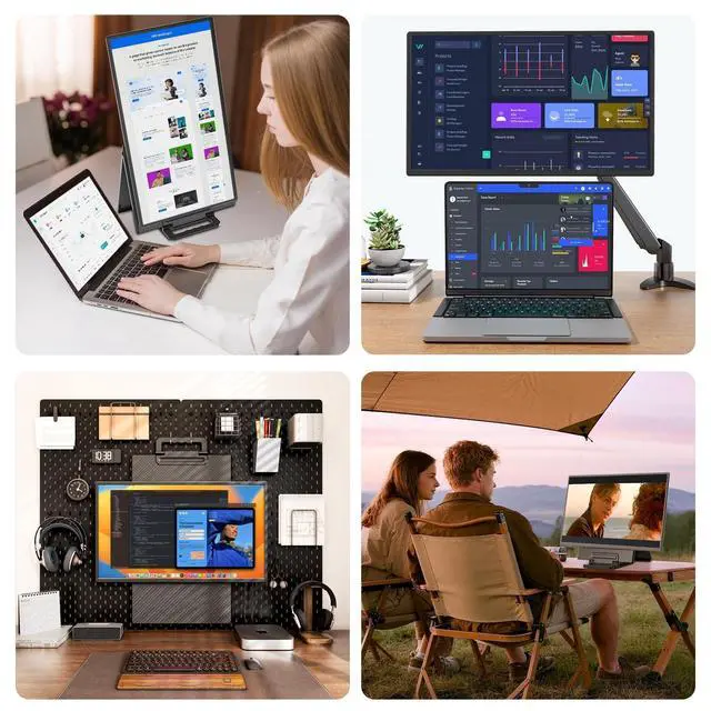 You'll enjoy high-quality visuals wherever you go. ^^ DIY Using WayCreate your ideal viewing angle with ergonomic flexibility. A detachable magnetic stand offers height adjustment (sit-stand friendly) and 90 rotation for portrait mode coding or reading. The 75x75mm VESA compatibility allows for wall or arm mounting, letting you place this monitor portable on pegboards to build a personalized workspace. ^^ Double the efficiencyThis laptop monitor extender lets you open different windows at the same time, like working, studying, video conference, movies, or games. In this way, your efficiency will increase up to 200% if you need work remotely, program, play games, trade stock, learn, watch a movie, etc! ^^ Plug & Play, Wide CompatibilityNO driver needed! Equipped with 2 TYPE-C*2 full-function ports + MINI HDMI + AUX 3.5 + 2 USB-A ports; It is compatible with multiple devices such as Laptop/PC/Phone /Switch/PS4-5/Xbox etc.