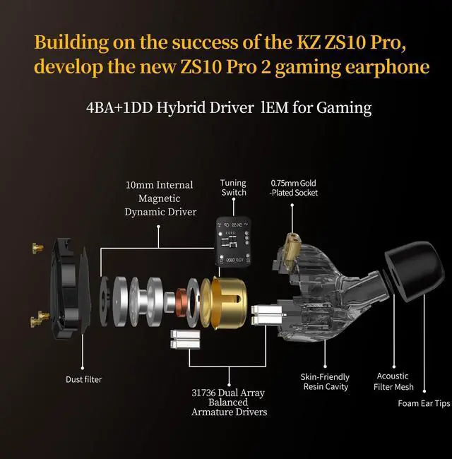 Unrivaled Immersive Audio: They feature 1DD+4BA 5 drivers, the sound is impressive. ZS10 Pro 2 allows users to clearly and accurately discern the source of footsteps and gunshots. Additionally, this powerful sound signature a perfect balance of gaming and musicality ^^