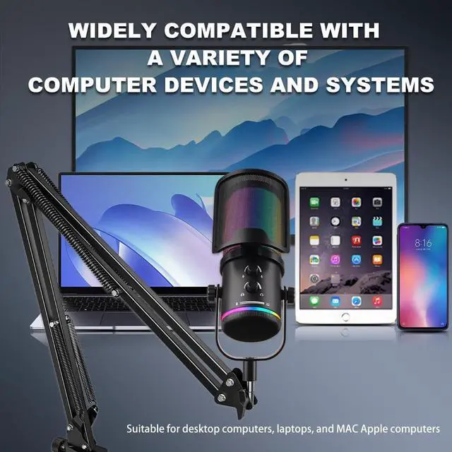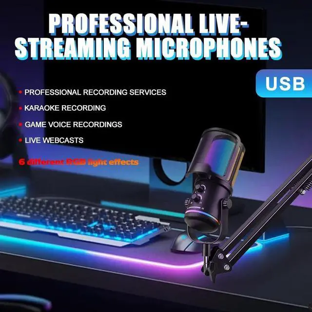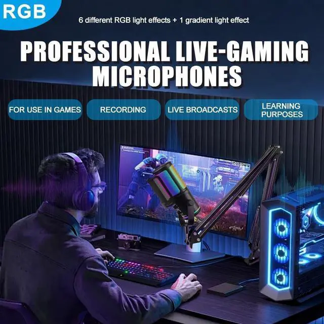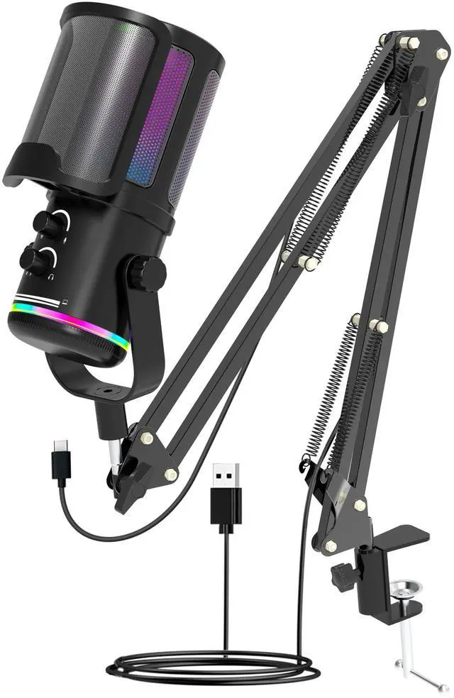 Package Includes: 1 x RGB Gaming Microphone (Mic Head) 1 x Adjustable Boom Arm Stand1 x Table Clamp1 x Pop Filter1 x USB-A to USB-C Cable1 x User Manual