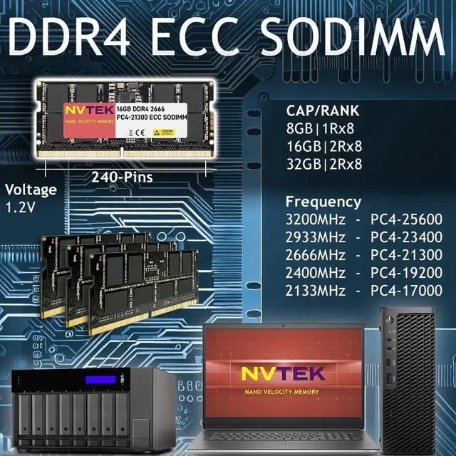 • NVTEK Develops NAS Memory Upgrades that are Compatible with all Major Brand Laptops, Desktops, PC Motherboards, AIO All-In-One PC's, Small form factor Computers and NAS Storage Devices Utilizing ECC Unbuffered SODIMM's.
