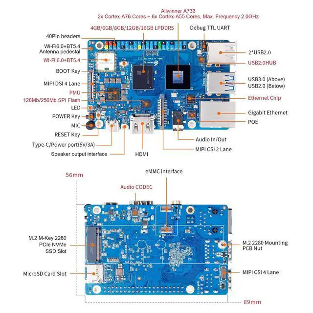 Whether for robotics, smart gateways, industrial control systems, or complex AI inference tasks, it empowers you to bring your projects to life quickly and efficiently. ^^ Wi-Fi 6+Bluetooth 5.4 - Faster, more stable transmission, even in high-interferenceenvironments. Gigabit Ethernet + PoE Support, Simplifies deployment bydelivering both power and dataover a single cable. ^^ Open Software - Supports multiple operating systems including Android, Debian, Ubuntuand OpenHarmony. Comes with complete driver support and development toolchains, enabling rapid model migration, application development, and system customization. ^^ Orange Pi Single Board Computers can builed a computer, a wireless server, Games, music and sounds, HD video, a speaker, Android, Scratch.