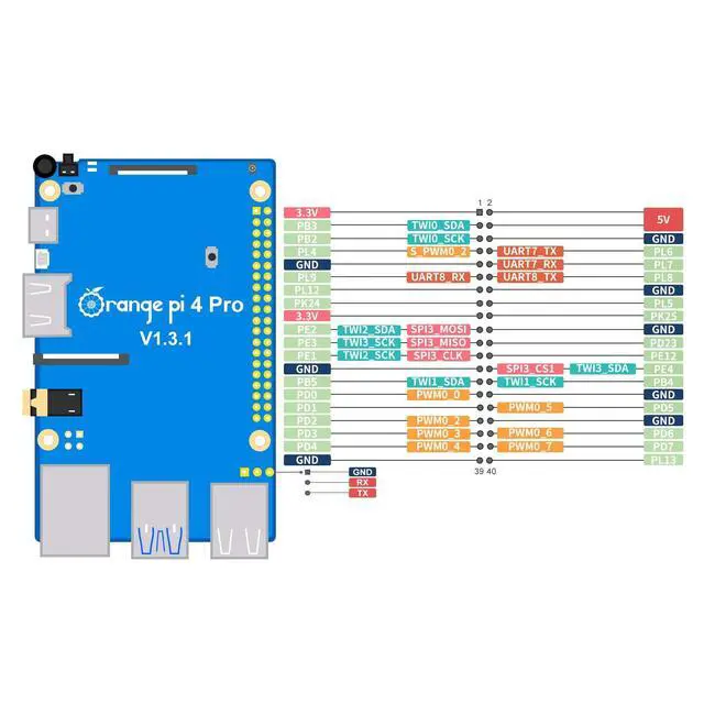 High Performance CPU - 2Cortex-A76 + 6Cortex-A55, clocked at up to 2.0GH z, ensures smooth and efficient multitasking. Featuring an octa-core processor, a dedicated NPU, rich I/O, and extensive expansion capabilitiesall integrated onto a compact boardthe OPi 4 Pro handles demanding applications with ease. ^^ Dedicated NPU - The 3 TOPS NPU accelerates real-time processing for tasks like face recognition and behavior detection. Supports INT8/INT16/FP16/BF16 multi-precision hybrid computing and is compatible with mainstream frameworks like TensorFlow, PyTorch, and ONNX, streamlining visual, speech, and inference tasks ^^ GPU + RISC-V Co-Processor - Combines efficient graphics processing with real-time control capabilities for smarter system resource allocation and faster response times.