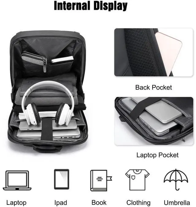 Independent Compartment+open pocket+other capacityOther capacity: rear pocket+shoulder pocketLaptop daypacks fits 15.6 inch laptop, 9.10 inch tablet, headset, thin clothes, books, magazine, camera, pen, keys, wallet, etc. Ergonomics Back & Shoulder Strap design, soft and comfortable, breathable, decompression. Made of high density Polyester Fabric, not easy get wet and ensure long lasting usage. Many padding on the back, shoulder straps, which make it comfortable to carry, barely feel the weight.