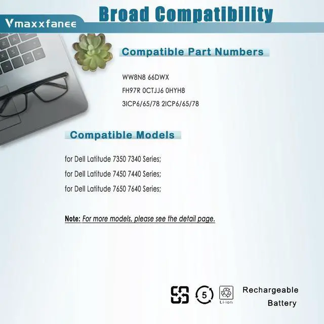 Condition: 100% brand New. ^^ WW8N8 battery Compatible laptop Models for for Dell Latitude 7440 Series laptop; for Dell Latitude 7450 Series laptop; Dell Latitude 7340 Series laptop; for Dell Latitude 7350 Series laptop; for Dell Latitude 7640 Series laptop; for Dell Latitude 7650 Series laptop. ^^ WW8N8 battery Replacement Part NumberWW8N8 66DWX 0HYH8 FH97R 0CTJJ6 2ICP6/65/78 3ICP6/65/78 ^^ Quality &