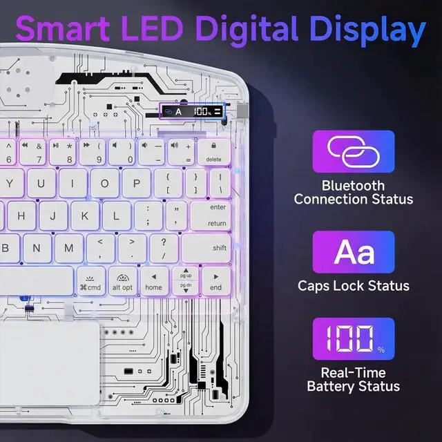 The sturdy stand provides a secure hold in any position for optimal comfort and productivity. ^^ Real-Time Battery Status AND Long Battery Life Equipped with unique battery display and a powerful rechargeable battery, The keyboard case offers 90days of use on a single charge via the included USB-C cable. This battery display clearly shows the iPad keyboard case's battery level, eliminating your anxiety about the unknown remaining battery. ^^ Secure Stylus Holder AND Full Protection Features a dedicated slot that securely stores and enables charging for your 2nd-generation stylus pen (compatible with Apple Pencil), ensuring it's always at hand.