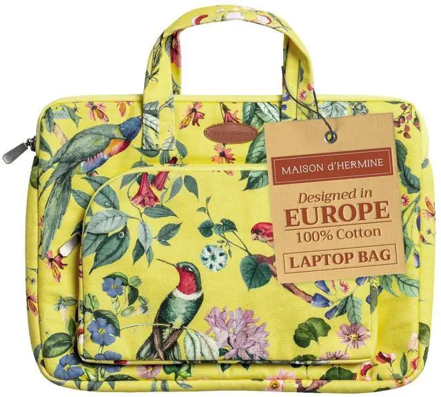 Maison d'Hermine Laptop Bag with Pocket Upto 15.5 inch Stain and Water Repellent Cotton Canvas Easter Gifts - Eden - Yellow