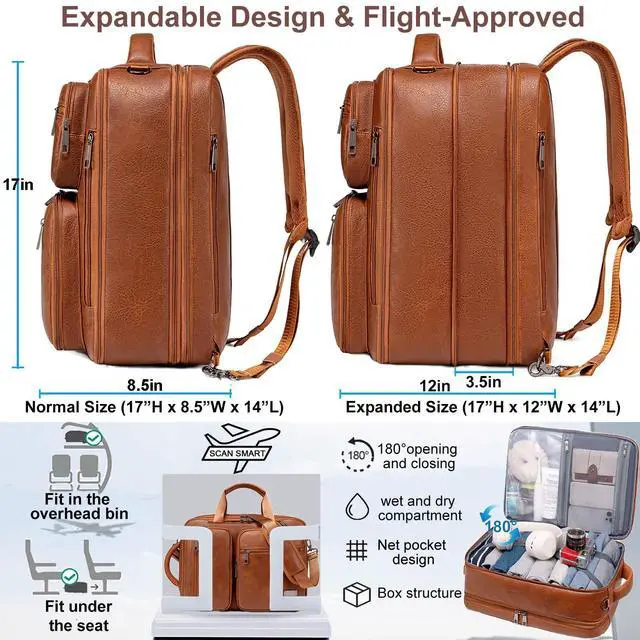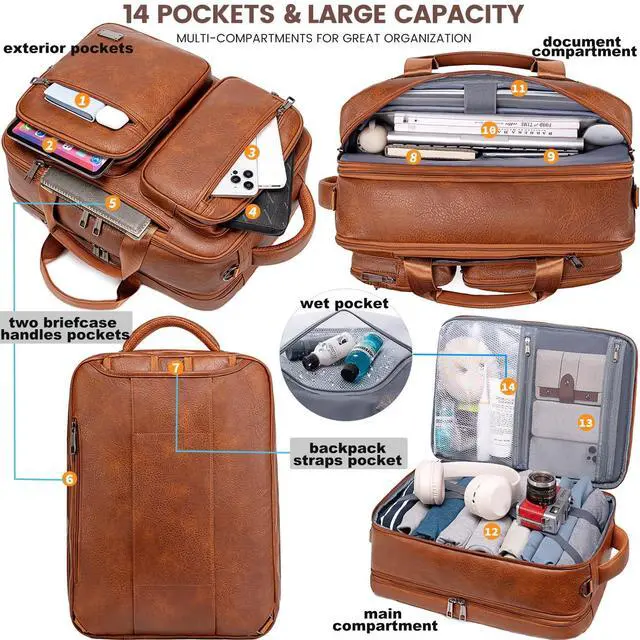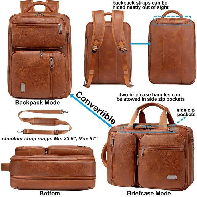 DescriptionWeiatas 3-in-1 Vegan Leather Convertible Laptop Bag for Men Women, 15.6 Inch Waterproof Expandable Backpack, Computer Briefcase, Shoulder Messenger Bag & Weekend Bag for Business, Travel, Office Work, Flight ApprovedStylish 3 in 1 convertible