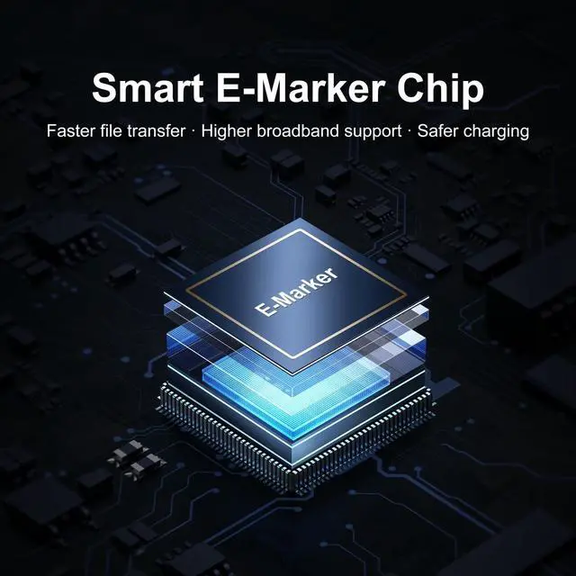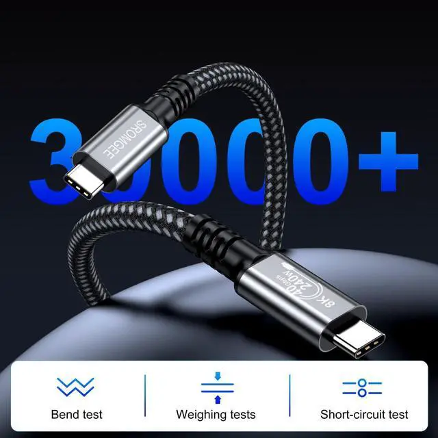 Reliable: Our nylon braided USB4 cable has triple protection and can withstand over 30000 bending tests. Equipped with an aluminum casing, it is durable and long-lasting. The interior is made of 86% tin plated copper, which has stronger anti-interference properties. The built-in E-marker chip supports intelligent current matching function, preventing overheating and overcharging to protect your device and extend battery life ^^
