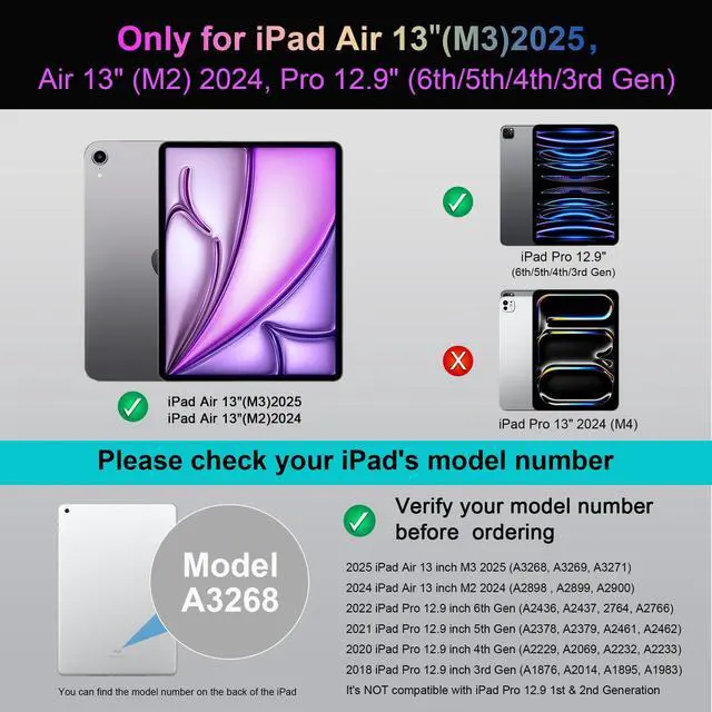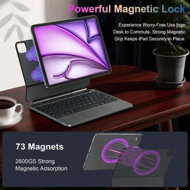 Powerful Magnetic Lock & Wide Compatibility: Equipped with 73 built-in strong magnets, this iPad keyboard case holds tablet securely in place, ensuring worry-free use whether at desk or on the go. The magic-style keyboard case works with iPad Air 13 inch (M3 2025, M2 2024), iPad Pro 12.9 inch 6th/5th/4th/3rd Gen.