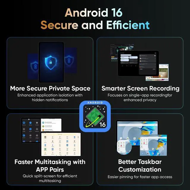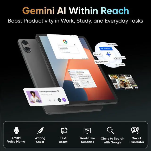 Gemini AI: The E50 tablet features the latest Android 16 system, delivering comprehensive enhancements in performance, efficiency, privacy controls and security. Gemini AI is a newly developed modern multimodal artificial intelligence system, specifically engineered for the seamless comprehension and integration of textual, visual, auditory and video information. For instance, it can automatically generate presentations based on video lecture contentmerging key textual elements with illustrative imagery for cohesive presentationguards ^^ Generous Storage Capacity +