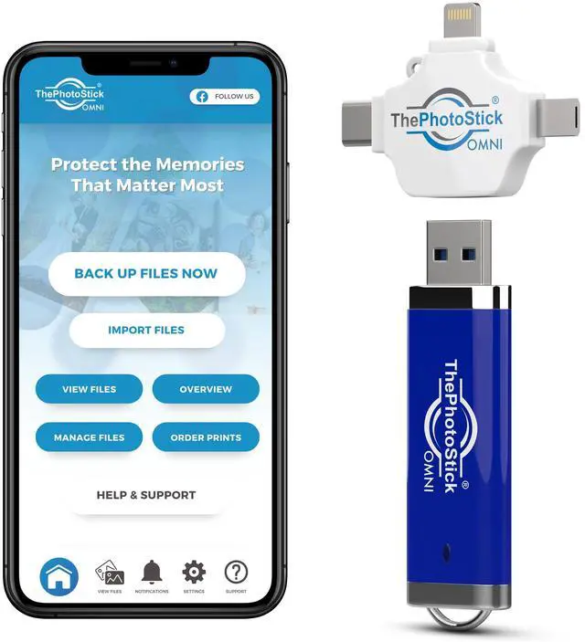 ^^ New year, new memory backups ThePhotoStick Omni is the simple way to declutter your devices, free up space, and start the year knowing your precious memories are safely backed up and organized. ^^ Easy to use with free app Download the app, connect the photo stick with the included adapter, and follow the onscreen steps to save your images, videos, and more. ^^ Broad file format support Compatible with common media types like JPEG, PNG, HEIC, GIF, MOV, and MPEG4. This memory stick works across devices for flexible storage.